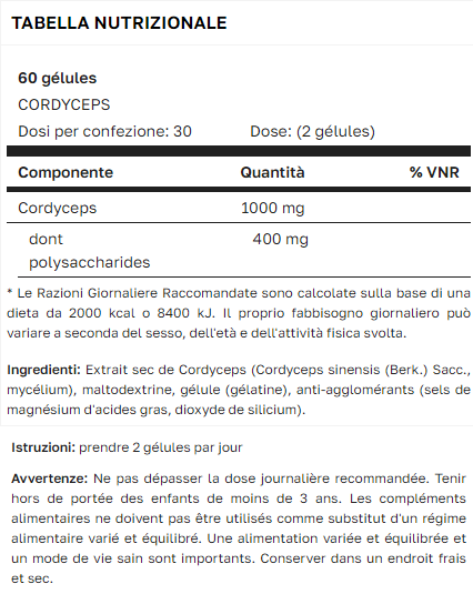 Кордицепсът е паразитна гъба, която благодарение на своите спори, изпускани във въздуха, заразява ларвите на някои насекоми и расте вътре, докато покълне. Въпреки че растежът й е много специфичен, тази гъба е добре позната и широко използвана в традиционната китайска медицина поради ползите си върху естествените защитни сили на тялото, особено по време на периоди на силен стрес и умора, но също така и заради нейното тонизиращо действие, способно да увеличи физическата устойчивост.