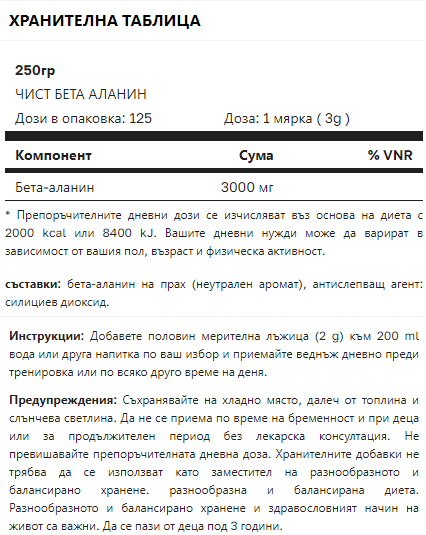Beta Alanine Pure от Tsunami Nutrition е чиста форма на бета-аланин – неесенциална аминокиселина, която играе ключова роля в синтеза на карнозин.