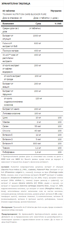 Tsunami Nutrition – Carb Blocker Pure Professional – 80 таблетки / 20 дози