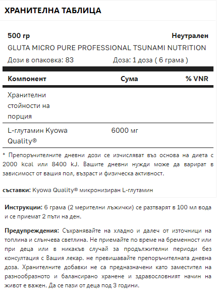Tsunami Nutrition – Gluta Pure Professional Kyowa Quality® – 500 грама / 83 дози